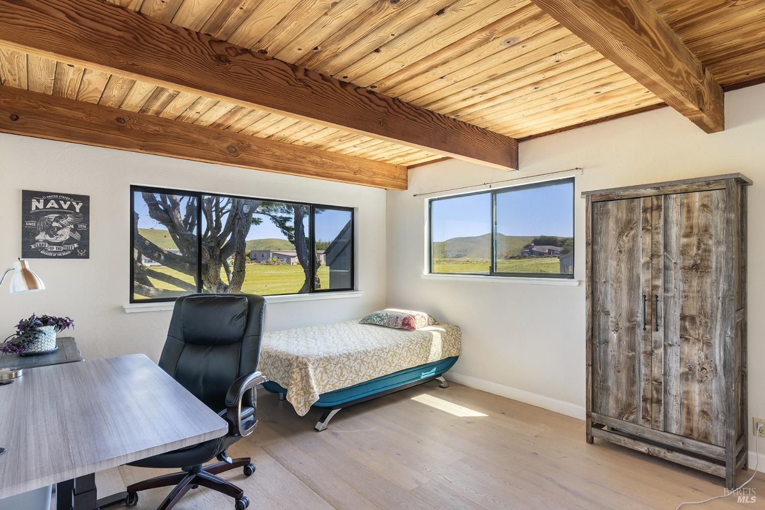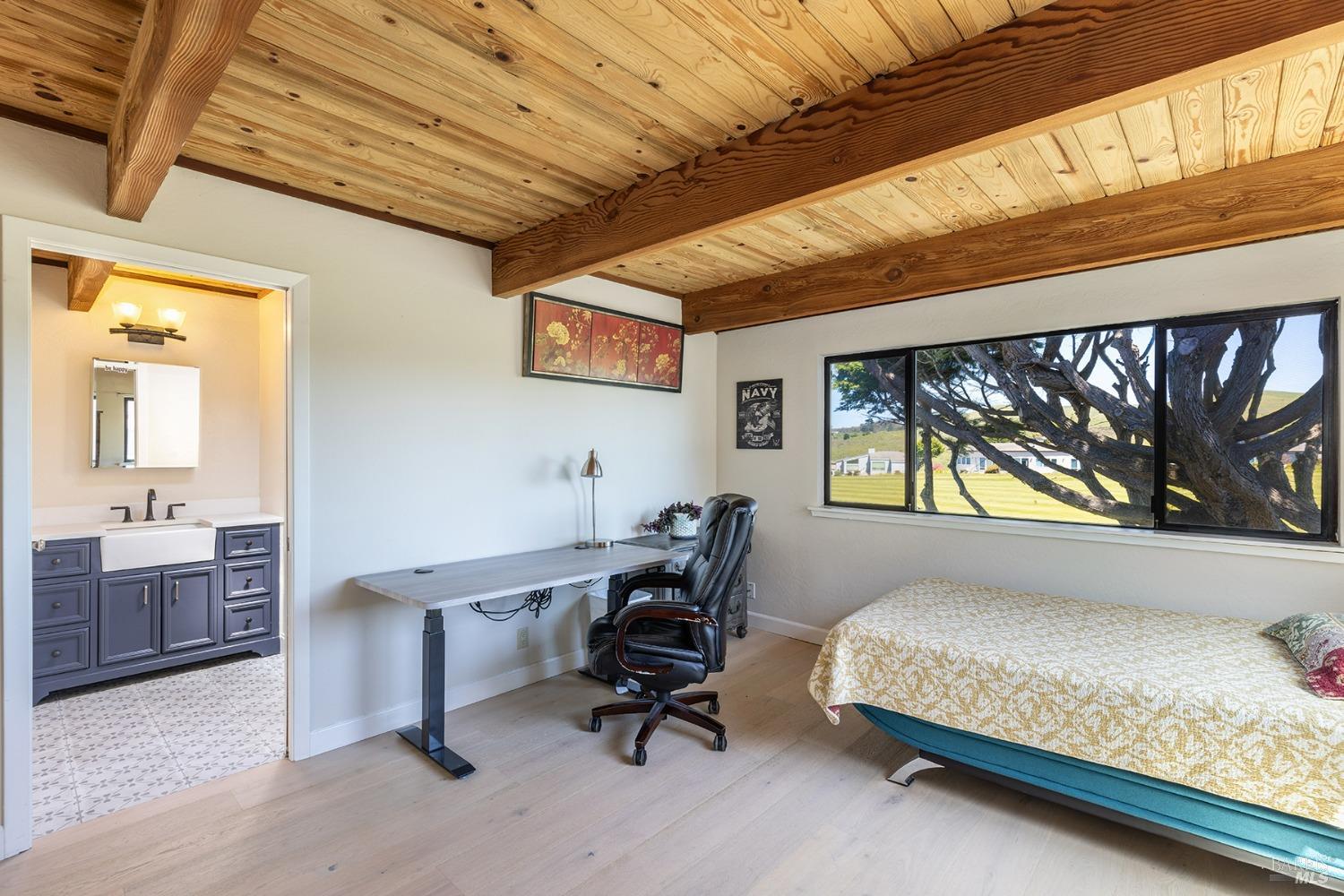 Welcome to the sought-after South Bodega Harbour coastal community residence, just a short walk to Doran Beach, the Links at Bodega Harbour, and clubhouse facilities. This meticulously updated residence is a haven for the health-conscious buyer. The property showcases modern features, a state-of-the-art solar system with four backup batteries, new exterior paint, and elegant French oak flooring. The kitchen has been remodeled to feature top-of-the-line appliances and new countertops; two of the bathrooms have been beautifully renovated, with one including a steam room. The property is enhanced with a fully moisture-protected crawl space equipped with a dehumidifier, sump pump, and French drain encircling the house. Upgrades include all-new electric heaters, an electric fireplace, a freshly landscaped garden with an irrigation system, and a new roof. The main suite offers breathtaking Ocean & Bay views, while the serene backyard provides a peaceful retreat with bay views. Sellers will consider including furniture. Amenities include clubhouse with a gym, locker rooms with saunas, an outdoor heated pool, member rates at the golf course and restaurant, a bocce court, basketball, pickleball and tennis courts.Location a quiet cul de sac.
